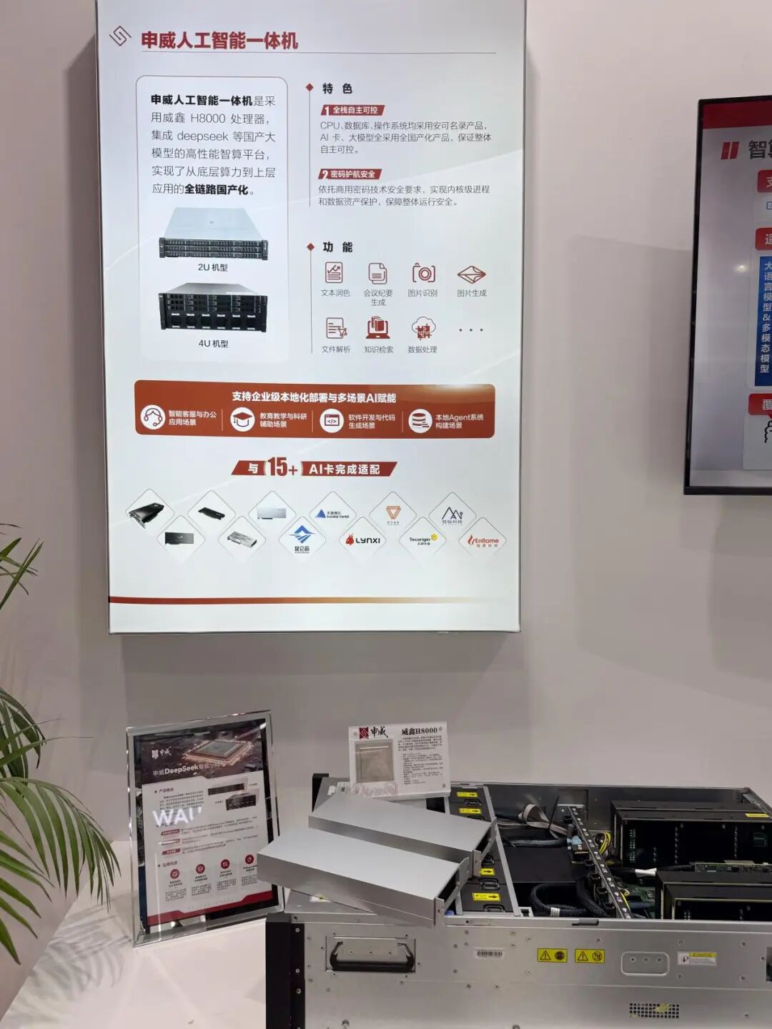 大會(huì)期間,太初(無錫)電子科技有限公司(又簡稱“太初元碁”)攜手申威亮相,展出基于智算一體機(jī)的產(chǎn)教融合解決方案。據(jù)介紹,該產(chǎn)教融合解決方案以威鑫H8000 CPU為核心,威鑫H8000采用自主指令集架構(gòu)SW64,內(nèi)部集成64個(gè)第四代申威通用高性能核心,相較上一代處理器,單芯片集成核心數(shù)翻番,性能提高4倍,實(shí)現(xiàn)了高算力卡點(diǎn)突破,綜合性能國內(nèi)領(lǐng)先,入圍安可名錄二級(jí)。同時(shí),威鑫H8000自研SMT2硬件雙線程技術(shù),采用128MB超大L3Cache緩存,支持國密算法SM2/3/4,安全性、易用性全面提升。